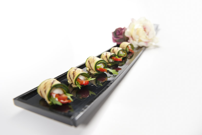 Zucchini and sun blushed tomato rolls with mozzarella and rocket (v)